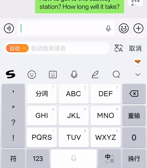 我一边打字,翻译结果就同步显示在输入框上方。我不需要切换键盘,不需要复制粘贴到翻译软件,思路完全不被中断。