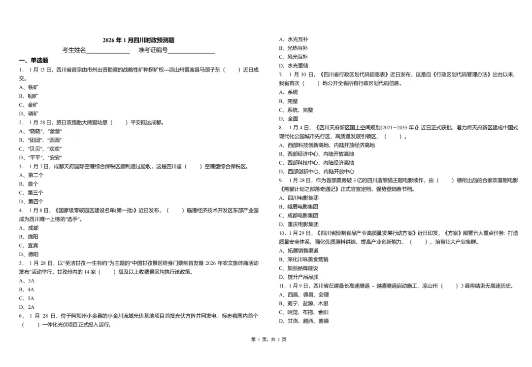 2026年四川省时政题库下载(PDF)