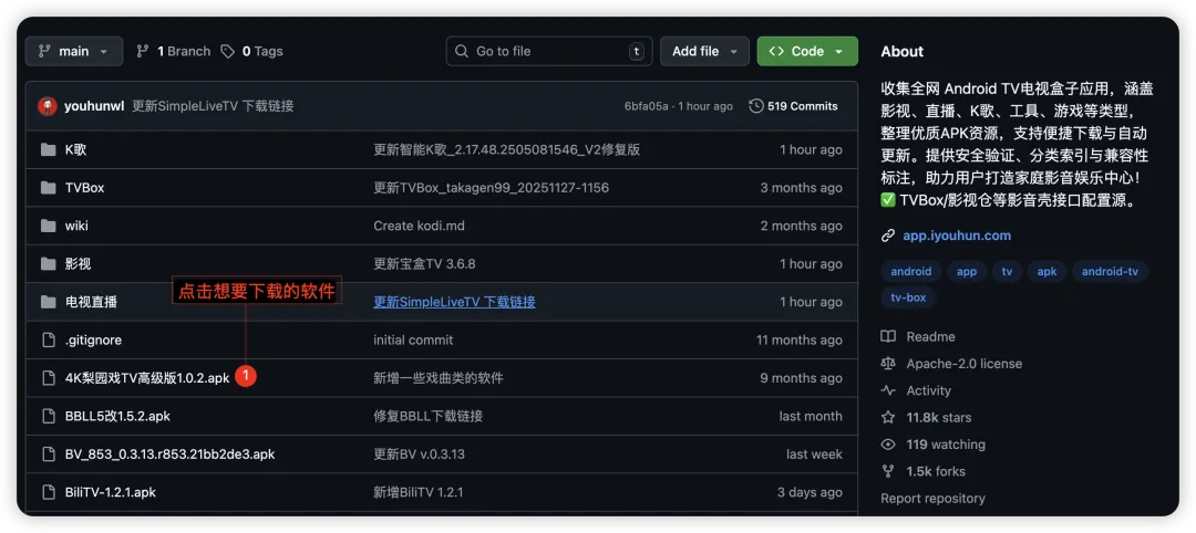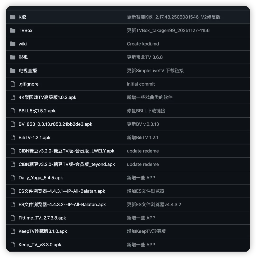 今天给大家推荐一个github上的项目,该项目拥有🌟Star11.8k,主要收集全网的 Android TV电视盒子应用,涵盖了影视、直播、K歌、工具、游戏等类型,支持便捷下载与自动更新提供安全验证、分类索引与兼容性标注,助力用户打造家庭影音娱乐中心! ✅ TVBox/影视仓等影音壳接口配置源。