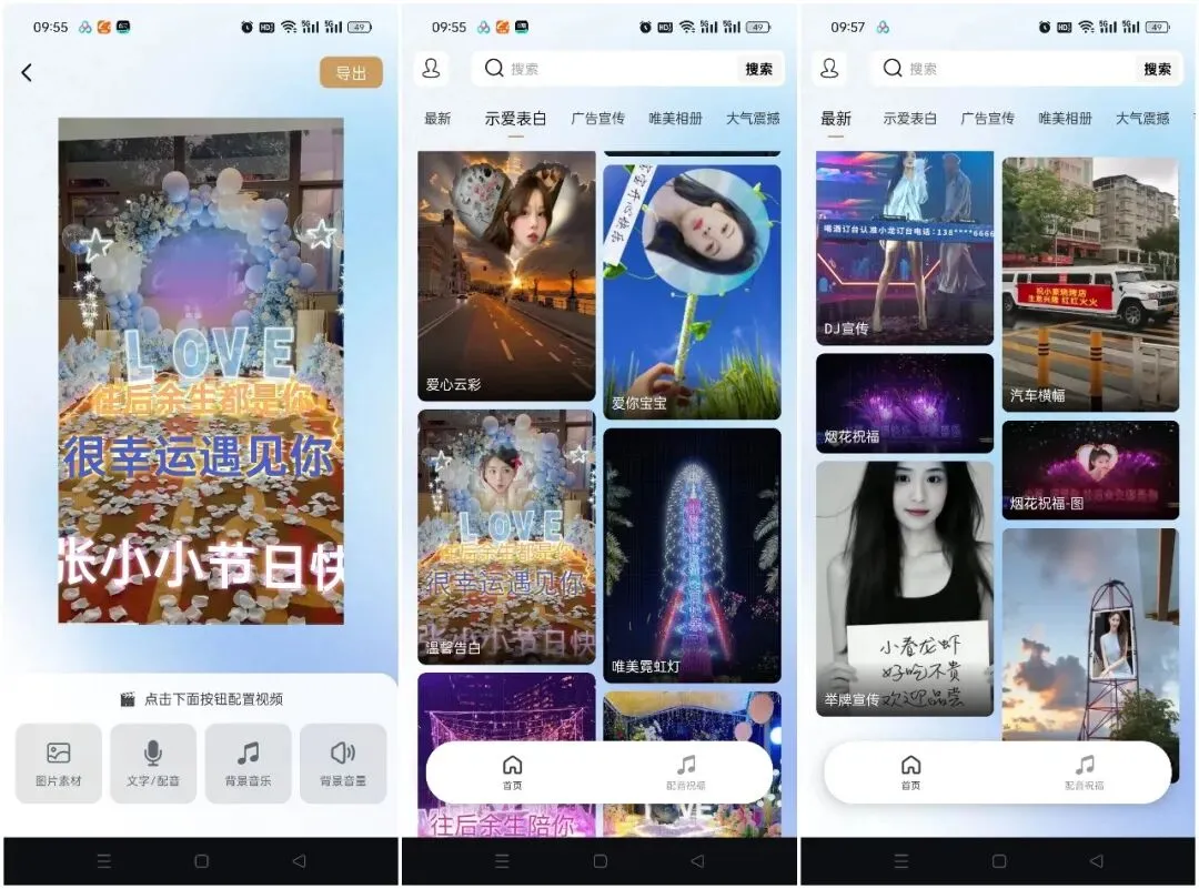一款手机工具App,表白祝福视频制作,浪漫告白,情意绵绵!提供表白祝福视频制作功能,让你轻松制作浪漫的表白或祝福视频,表达你的心意。界面简洁,操作便捷,是你的表白神器