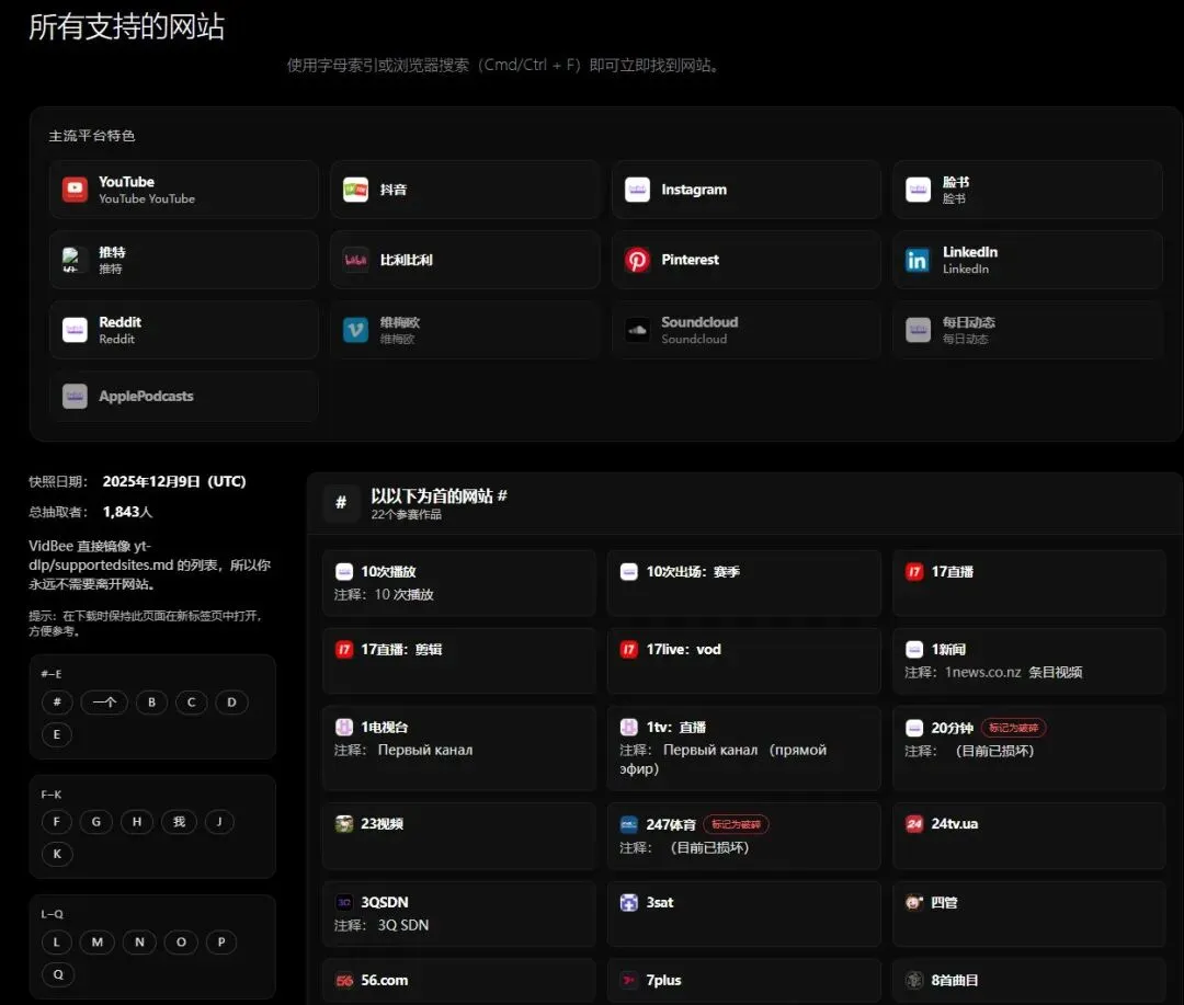 基本上所有视频平台支持下载(支持国内和国外),全平台覆盖:支持 YouTube、Bilibili、TikTok、Instagram、Facebook、Twitter(X)、Vimeo 等 1000+ 海内外主流平台。无任何内购,无烦人广告,界面清爽干净。
