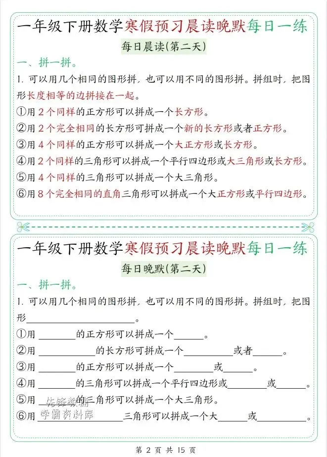 ✅️「一年级(下)数学寒假预习晨读晚默每日一练.pdf」链接:https://pan.quark.cn/s/fb354d0cbd8f
