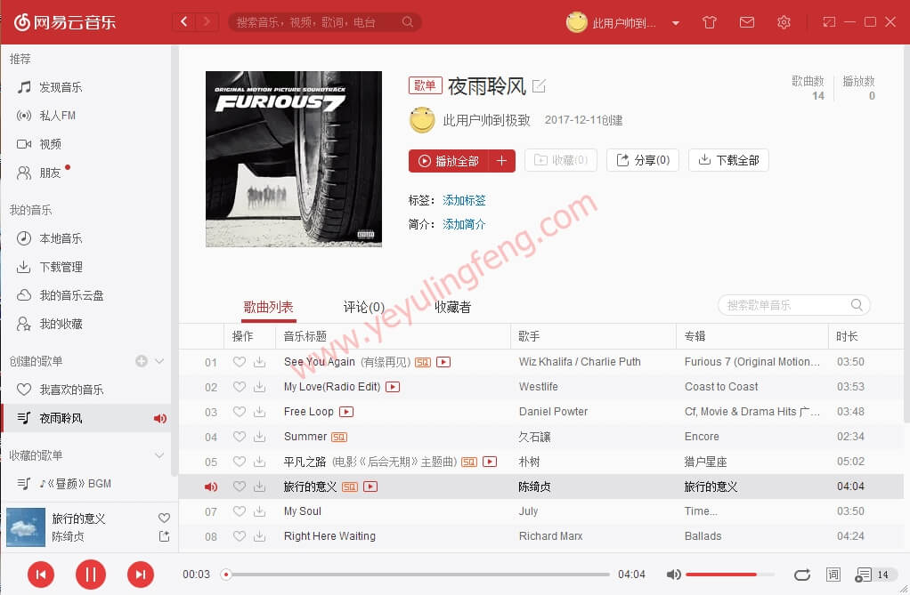 如今几款音乐工具几乎是被“BAT”国内三大厂瓜分干净了,曾经的酷我、酷狗现在也都是归于鹅厂;千千静听被百度拿下然后天天换名字玩,就在前几天又更名为千千音乐;天天动听也被杰克马并入阿里音乐旗下。网易云音乐作为最晚出来的音乐软件,几乎是一夜之间火了起来,并且还拥有着良好口碑和非常可观的用户市场,或许是因为满世界包地铁、包飞机广告,各种扎心666的评论,上天入地,排山倒海,营销案例做确实挺清新脱俗。目前歌曲版权还是限制音乐平台发展重要因素,大部分的版权资源全在几个地主家里,就连老夜最喜欢那个唱双杰伦的歌手周杰棍的歌曲前阵子因为版权也被下架了,看来网易云音乐还得再接再厉了~~