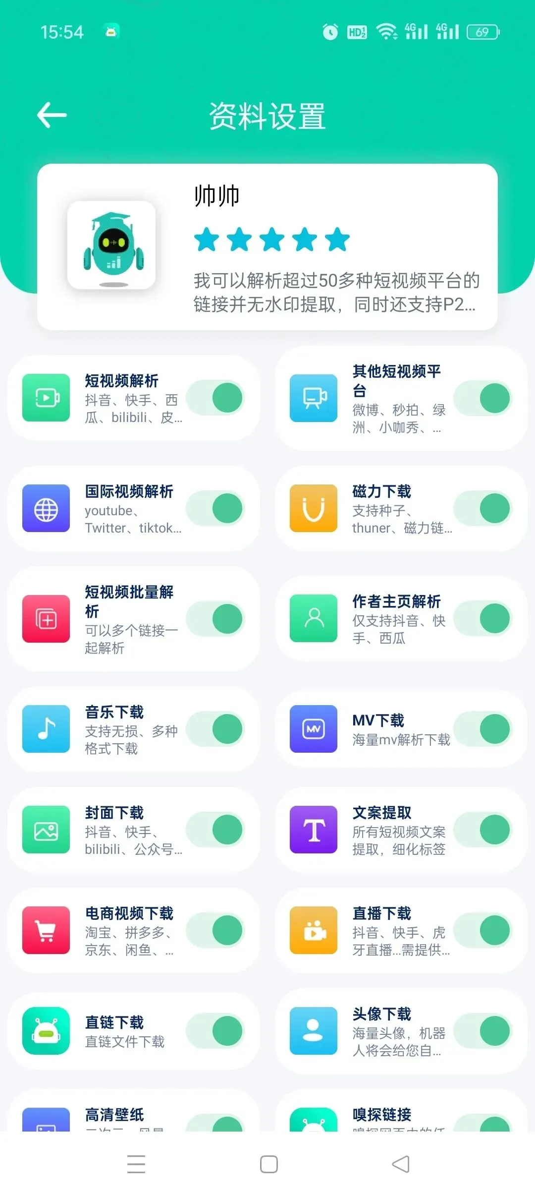 帅帅:全能型选手,擅长国内外50多个短视频平台的无水印解析、磁力下载,甚至能深度嗅探网页中的隐藏文件。
