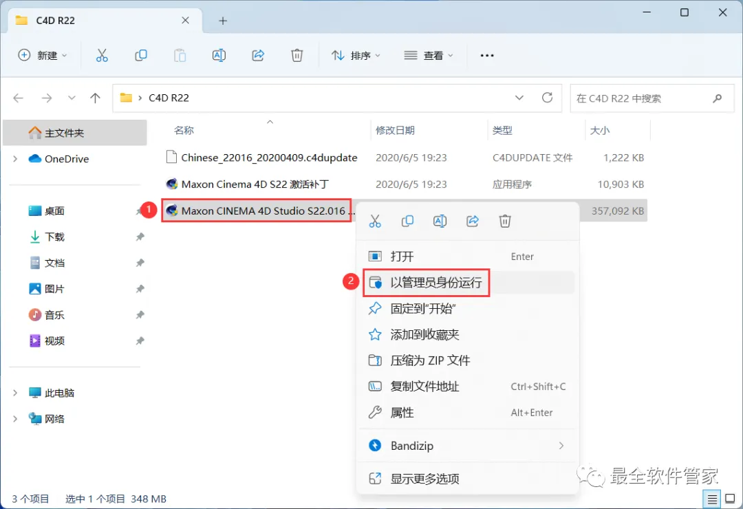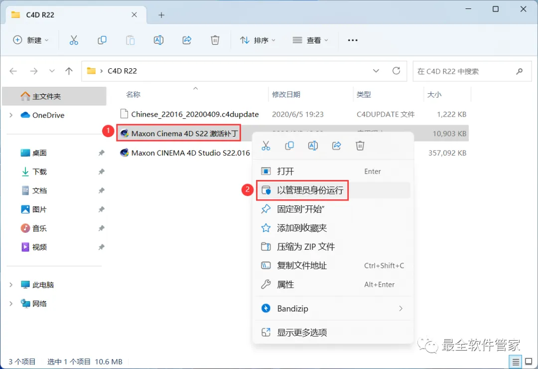 10、回到C4D R22文件夹,找到【Maxon Cinema 4D S22激活补丁】程序,右键选择【以管理员身份运行】它