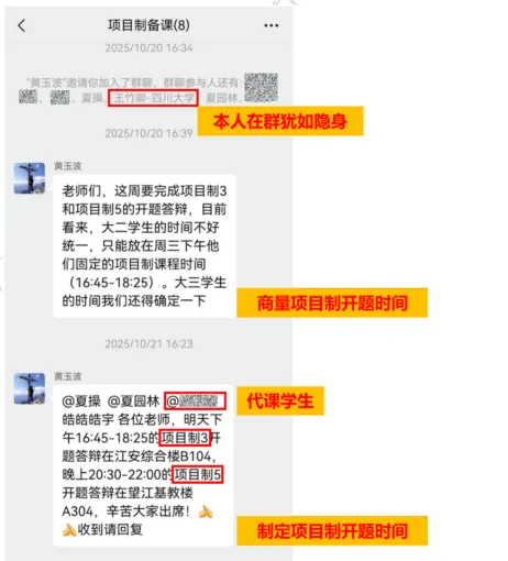 2025年10月到2026年1月,,他先后5次缺席本科课程,偶尔去上一次课,也不讲课、不答疑,反倒絮絮叨叨地宣扬日本文化、自己的婚姻观。