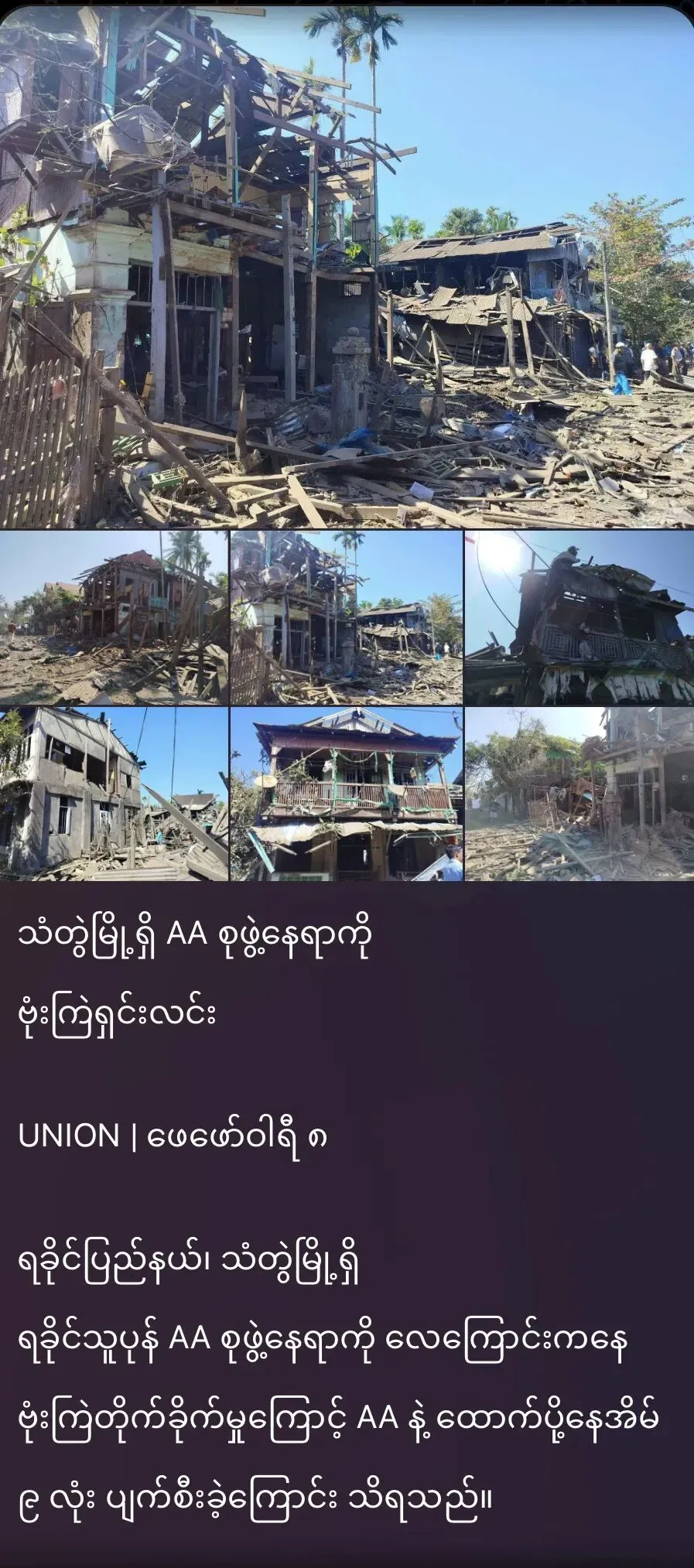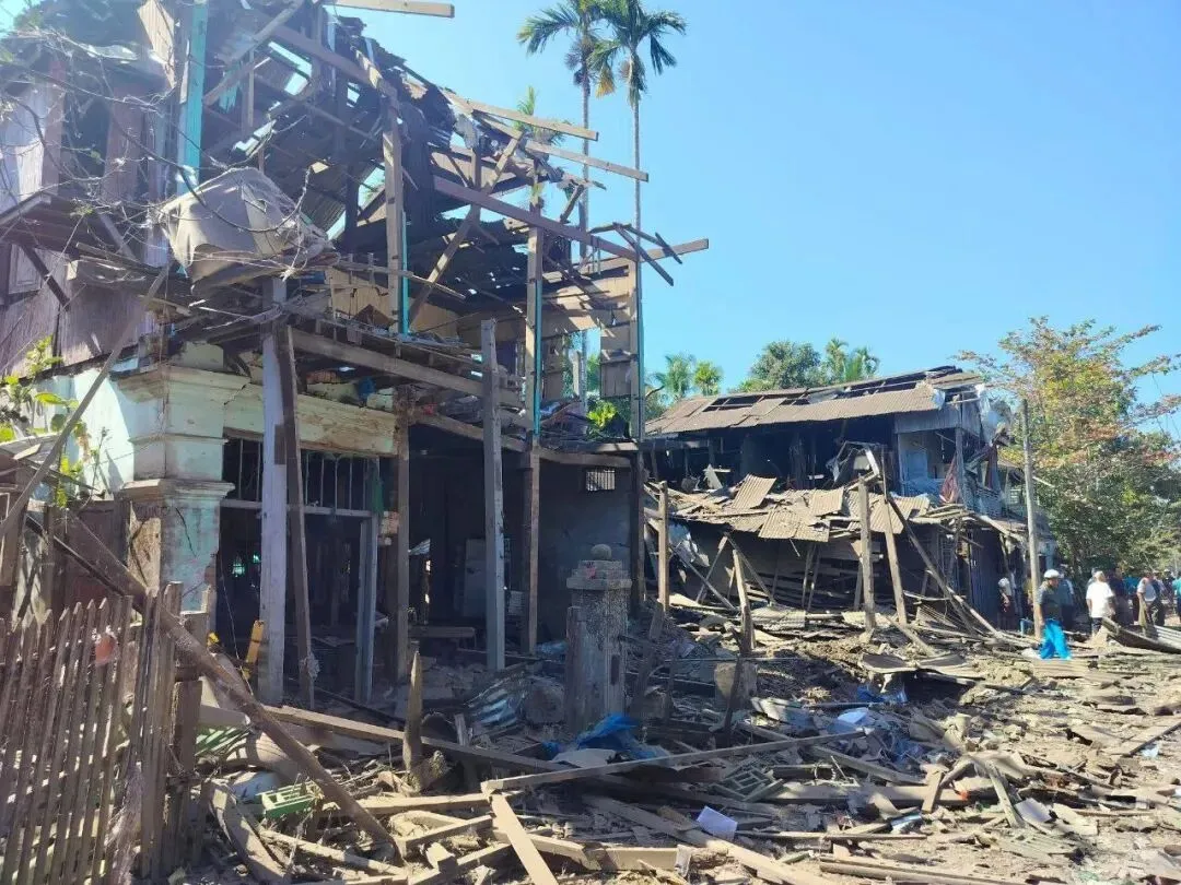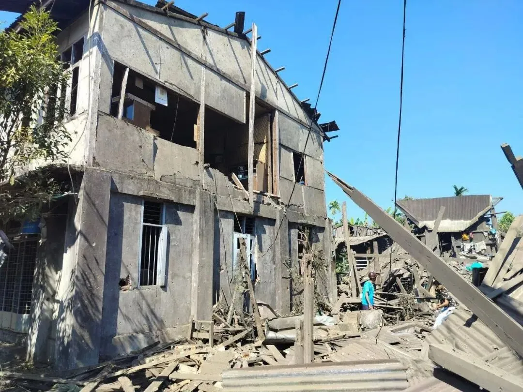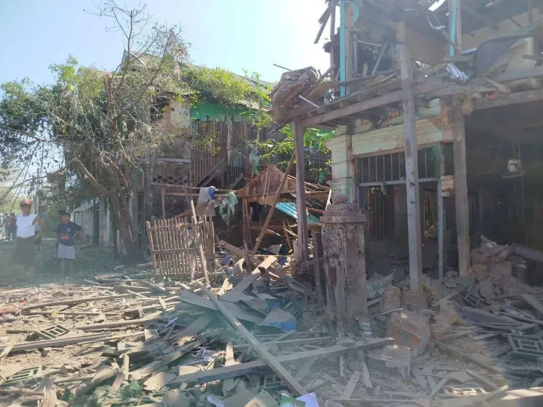 据报道,2026年2月8日约13:30,若开邦Thandwe(3)镇内的若开族叛乱武装AA据点遭到空中轰炸。此次轰炸导致AA的后勤住宅及辅助建筑共9座房屋被摧毁。