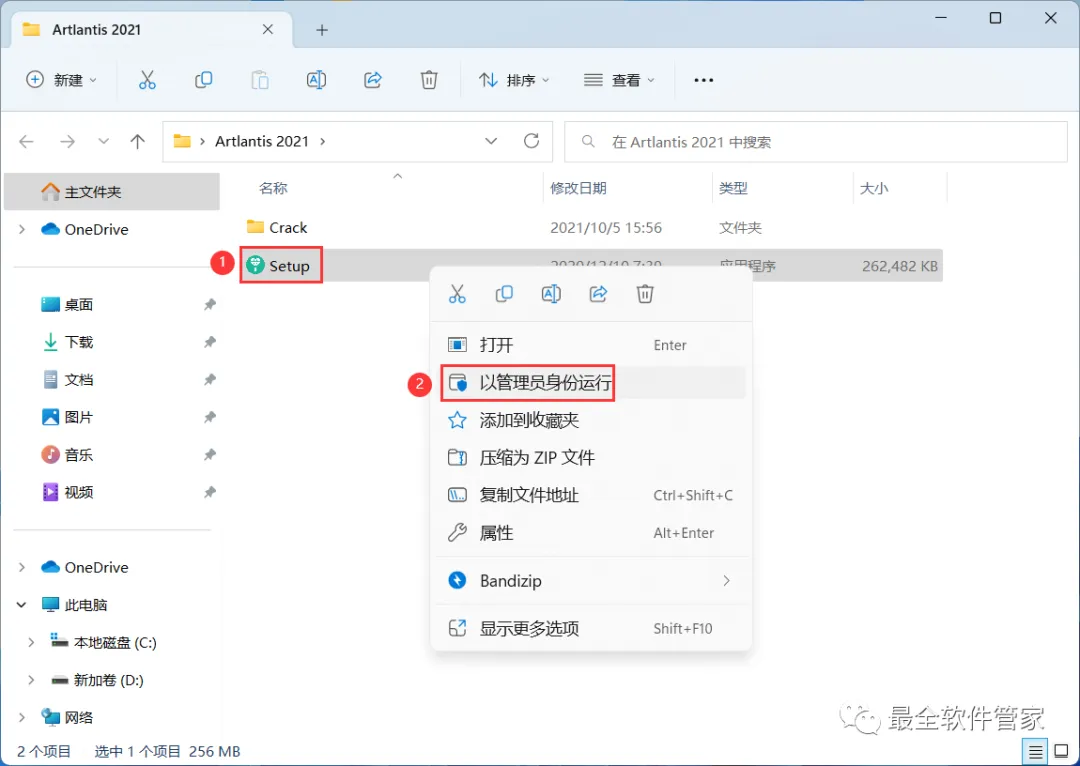 12、回到Artlantis 2021文件夹,找到【Crack】文件夹,右键【打开】它