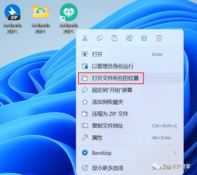 15、右键桌面上的【Artlantis 2021软件图标】,点击【打开文件所在的位置】