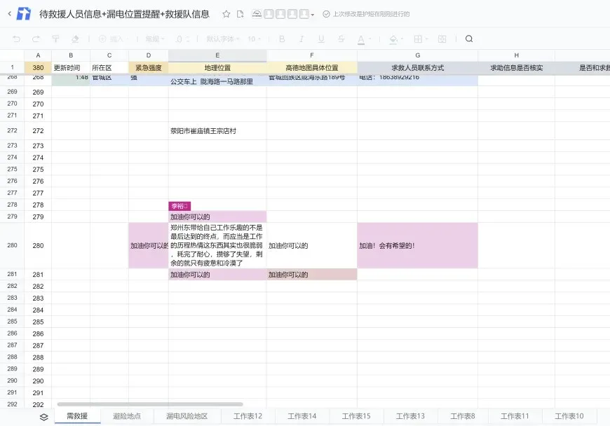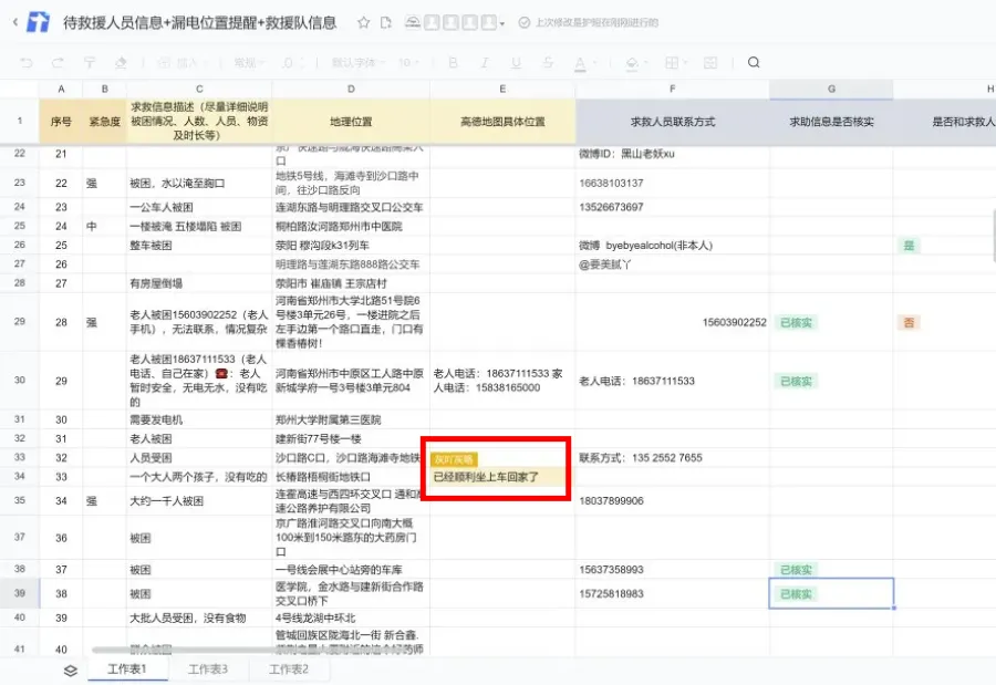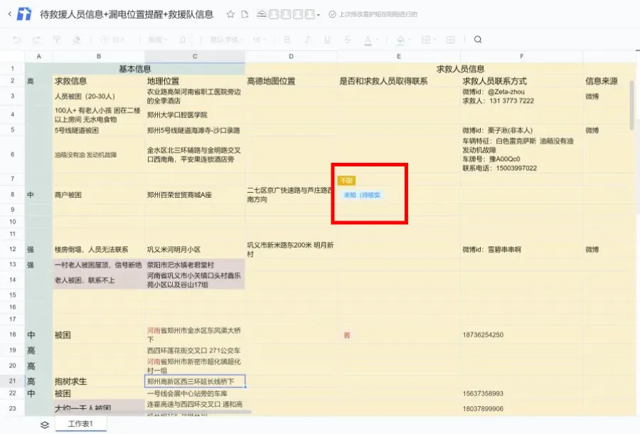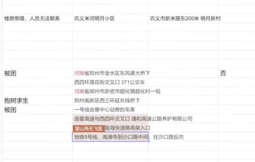 与此同时,他们收集到越来越多的受困人员信息,整理在表格中。
