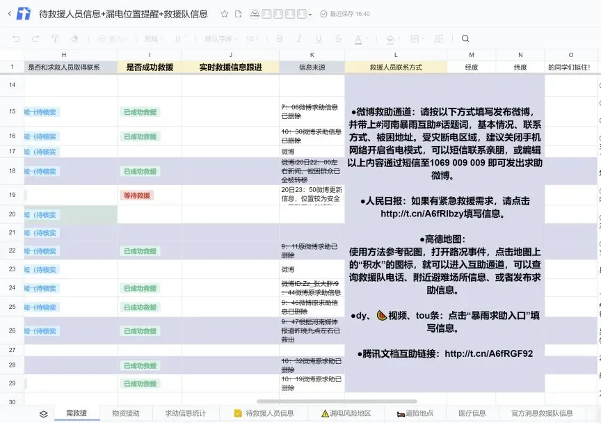 所以,他们决定做一个信息整合文档,整合、核实救援信息。