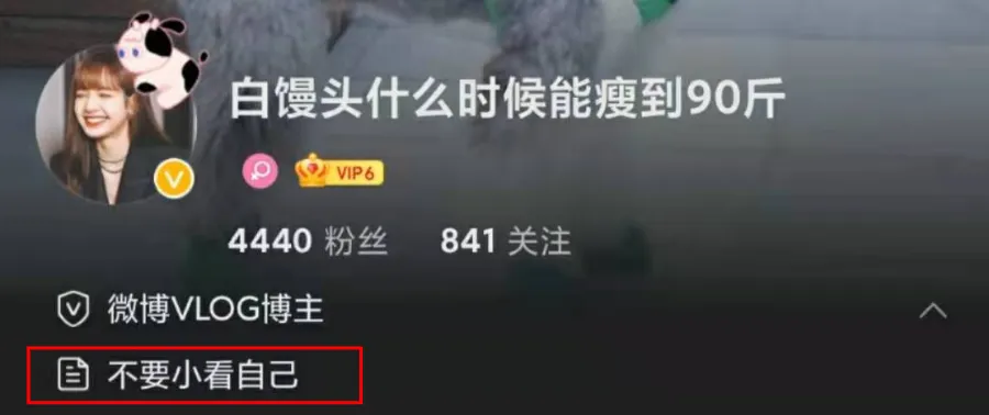 跟普通女孩一样,她也会喊着口号减肥,所以把微博名改成“白馒头什么时候能瘦到90斤”;喜欢Lisa,所以用她做头像;喜欢吃馒头,所以叫自己manto。