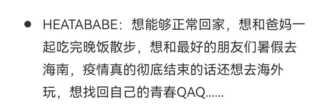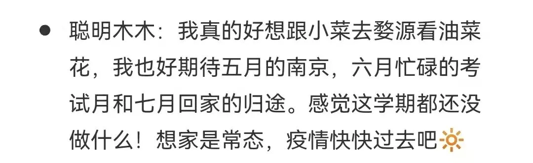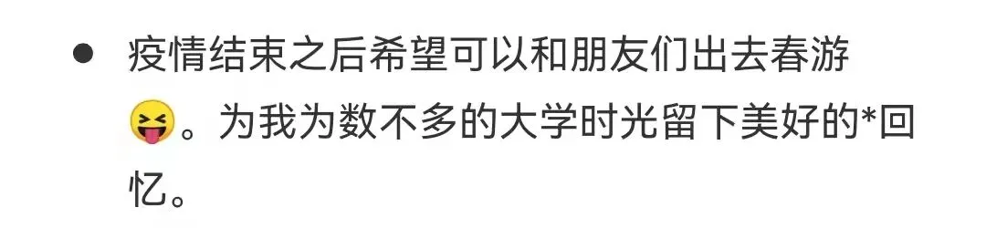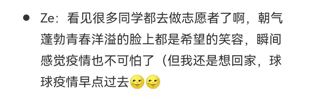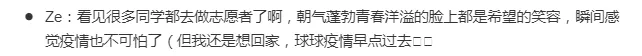 正如文档最后写的:“在这段时间里,大家或许很难和我们喜欢的人拥抱,趁着春光看看周遭的美好,但我们依然希望有这样一些文字记录下你们所有的浪漫片段和期待。等到疫情的海浪褪去,那些过往的遗憾不也会被卷走,字里行间是闪着微光的宝贵记忆。”