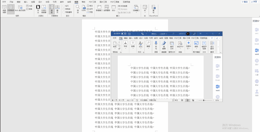 点击【全部重排】后,会出现【并排查看】和【重设窗口位置】。