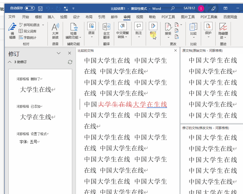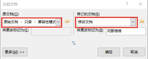 在【比较文档】、【原文档】和【修订的文档】里,分别选择需要的文件。