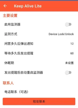 7、【Android】【APP】《死了么》的安卓版(Keep Alive)——如果您在指定时间内未使用设备, 手机就自动通过短信向一位或多位用户发送自定义消息; -