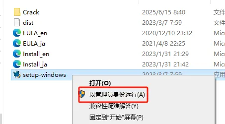 第三步:打开解压后的文件夹,找到【setup-windows】,选中右击【以管理员身份运行】。