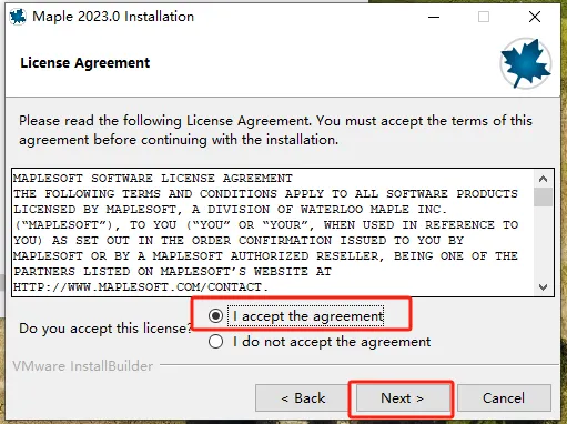 第六步:选择【I accept the agreement】,然后点【Next】。