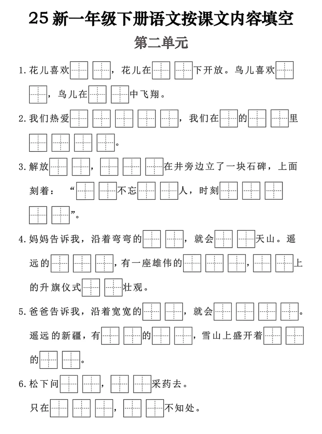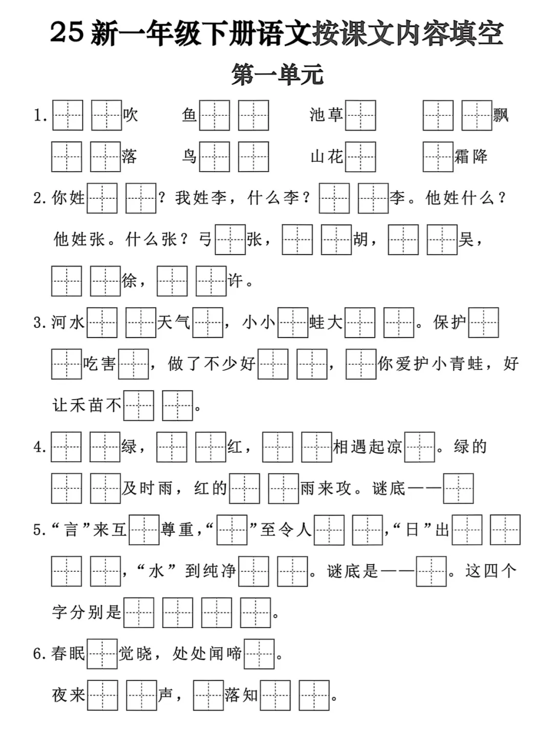 【免费下载】一年级(下)语文 按课文内容填空,PDF电子版,可打印