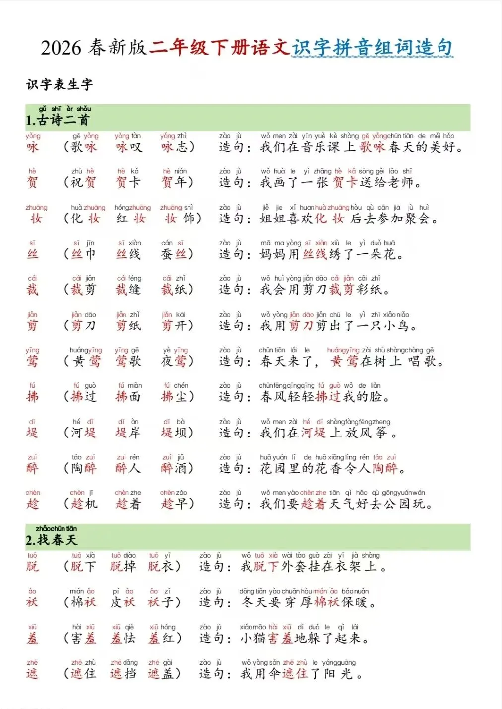 26春新版二下语文识字表拼音组词造句.pdf【附资源】
