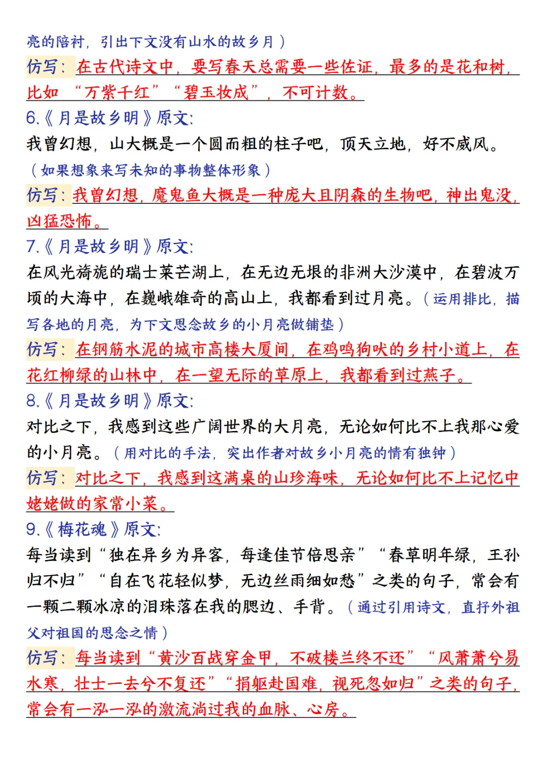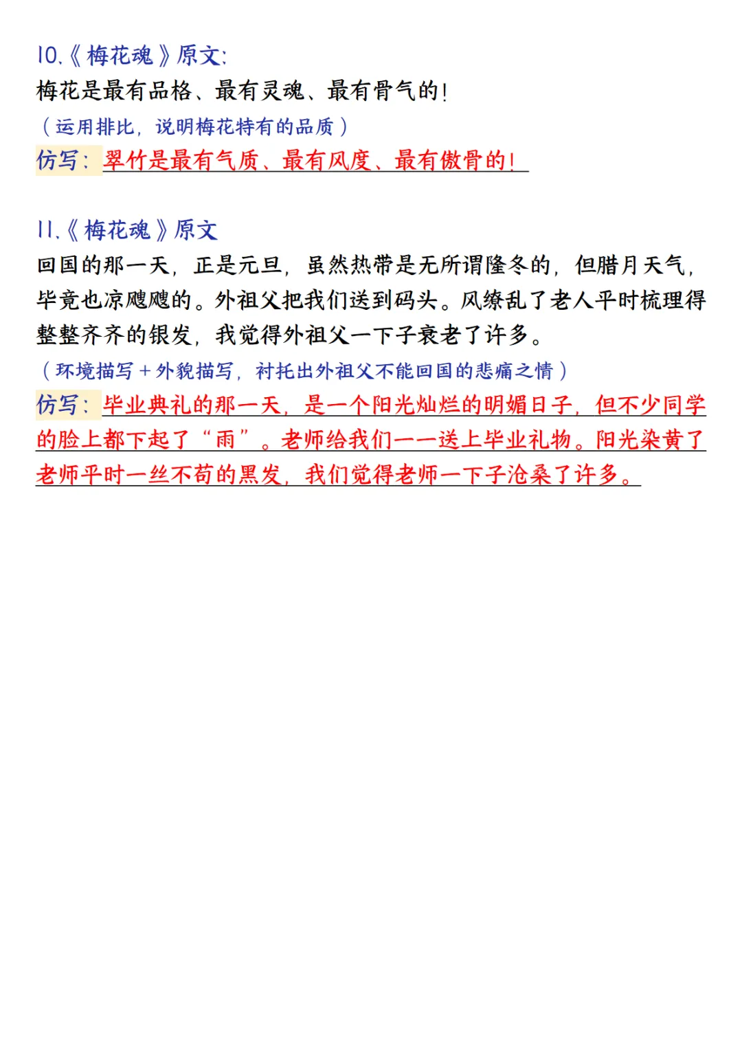 【免费下载】五年级(下)语文 1-8单元金句仿写