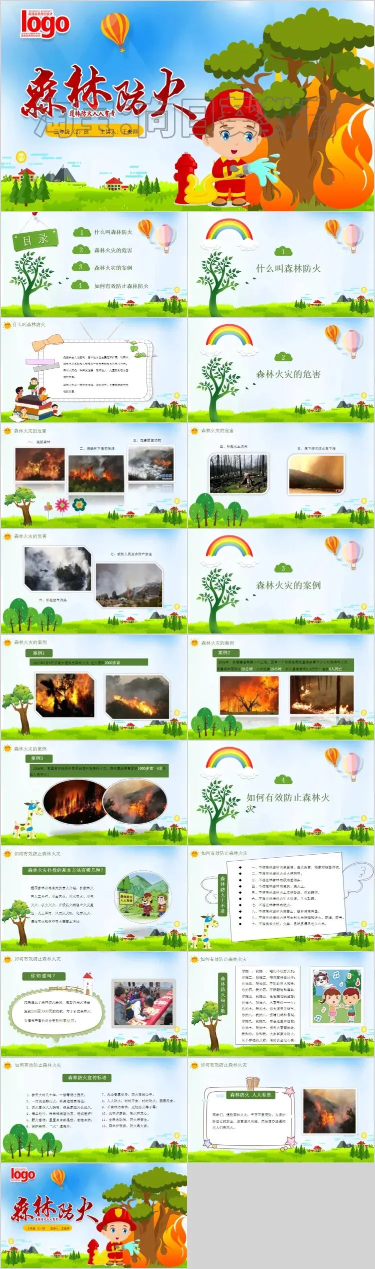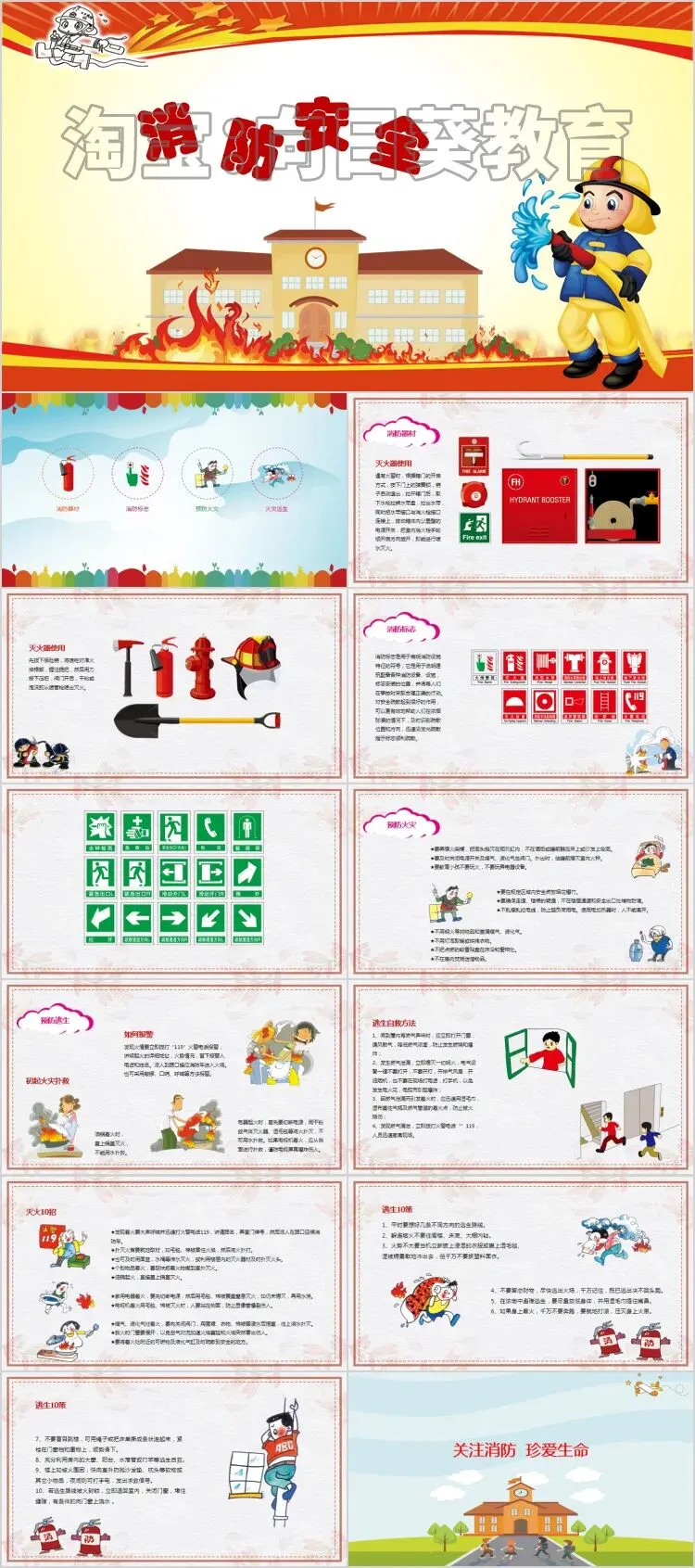 本次分享PPT分别聚焦校园消防安全与森林防火安全,社会消法安全,风格鲜明、图文并茂,适合用于中小学安全教育主题班会或公益宣传。