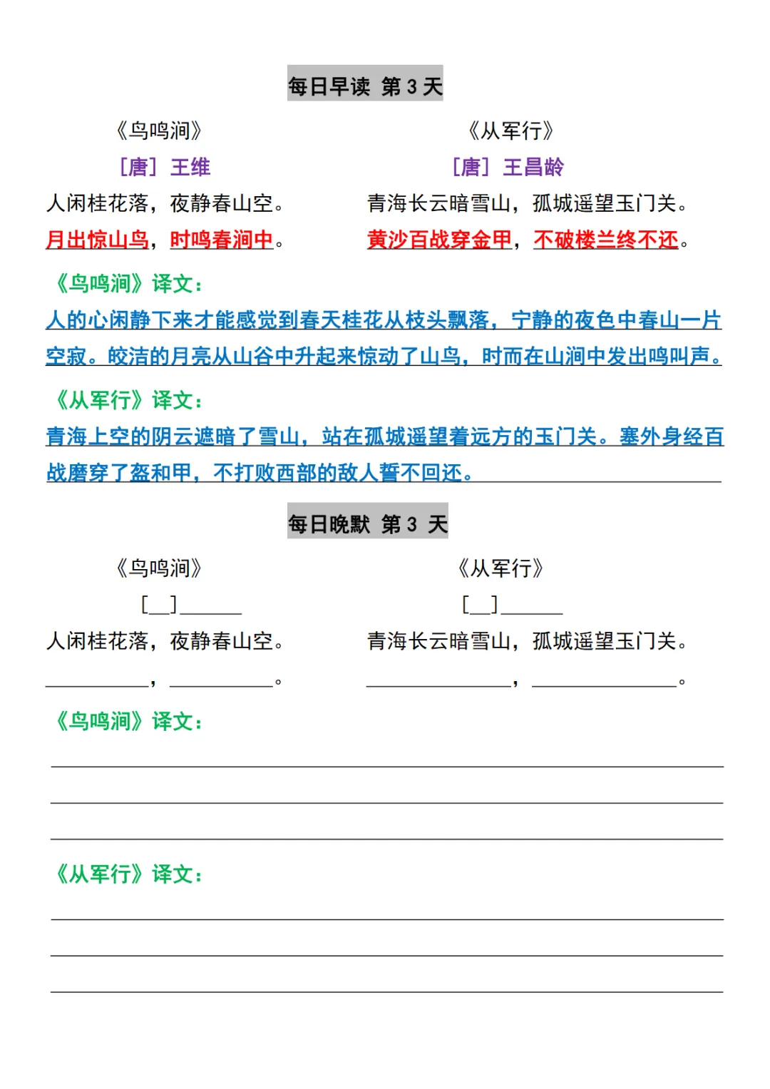 五年级(下)语文寒假预习【晨读晚默】每日一练