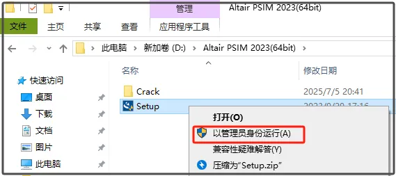 第三步:打开解压后的文件夹,找到【setup】,右击【以管理员身份运行】。
