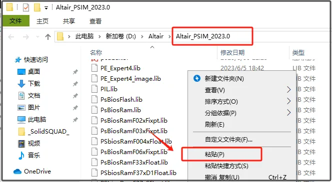 第十七步:将刚刚复制的Altair_PSIM_2023文件夹中的内容,都粘贴在此处。