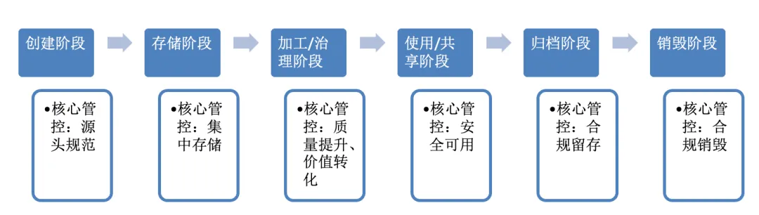 文档的生命周期可分为创建→存储→加工/治理→使用/共享→归档→销毁六大环节,治理的核心是将管控规则与治理动作融入各业务环节,实现“全程可控、全程可追溯”。