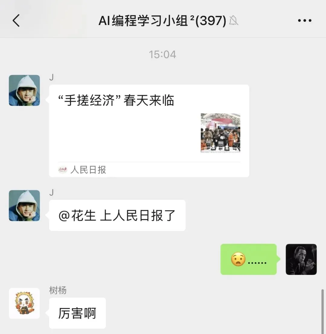 昨天,我的「AI编程学习」群里,有人转了一篇人民日报的文章,跟我说:你上人民日报了。