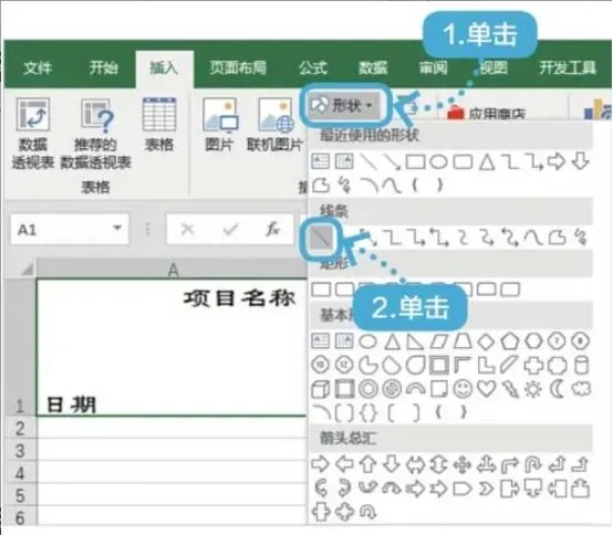 02在A1单元格中从左上角向右侧绘制1条直线。