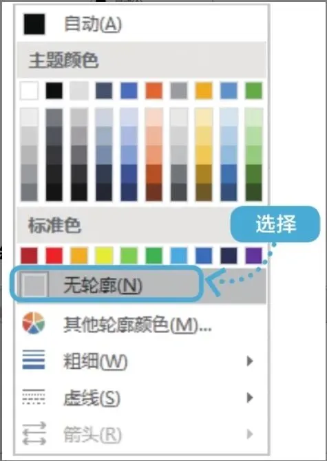 08选择绘制的文本框,单击【绘图工具】→【格式】→【形状样式】组→【形状轮廓】按钮的下拉按钮,在弹出的下拉列表中选择【无轮廓】选项。