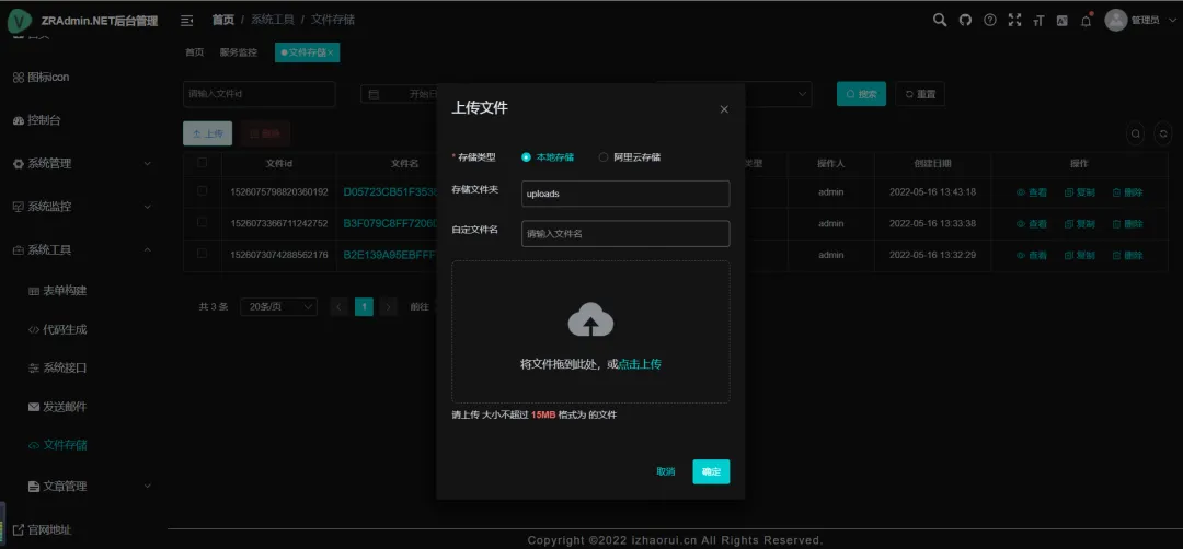 • 文件管理:支持本地及阿里云对象存储(OSS)的文件上传与下载。