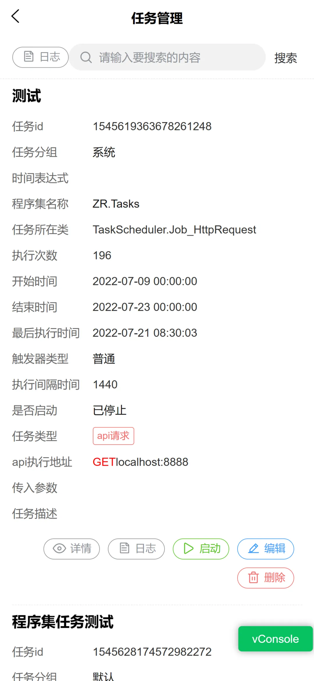 • 任务系统:基于Quartz.NET的在线任务调度管理,支持增删改查、手动执行及结果日志查看。