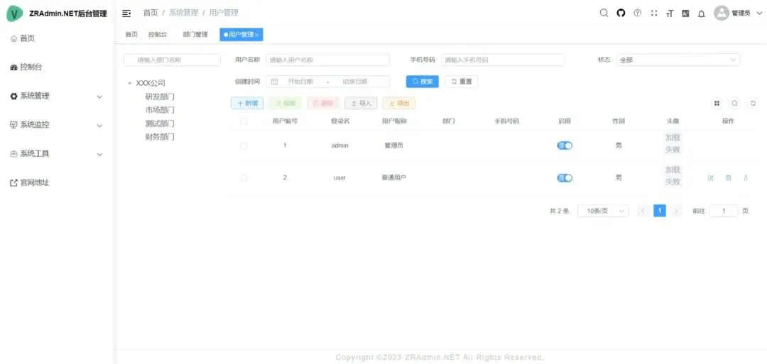 基于.Net8+VUE2/3/UniApp、RBAC前后端分离、跨平台的通用权限管理后台