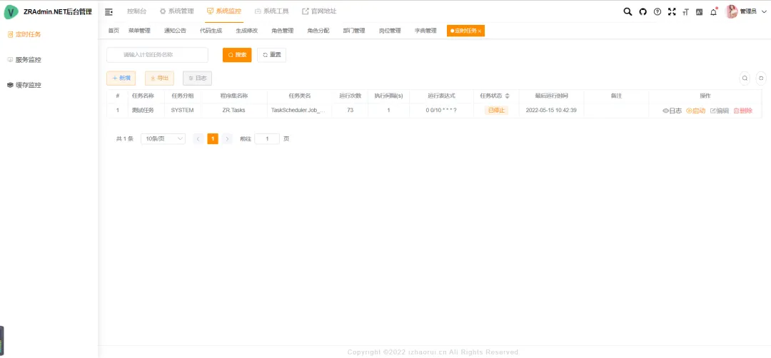 - 任务系统:基于Quartz.NET的在线任务调度管理,支持增删改查、手动执行及结果日志查看。