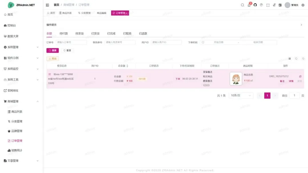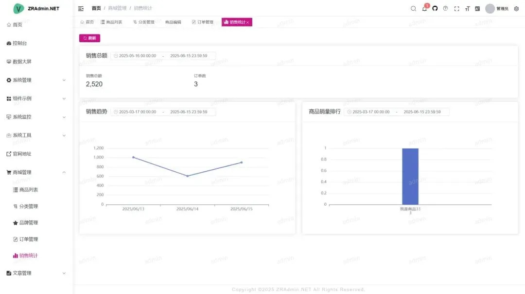 - 角色管理:分配角色菜单权限,支持权限继承与自定义组合。