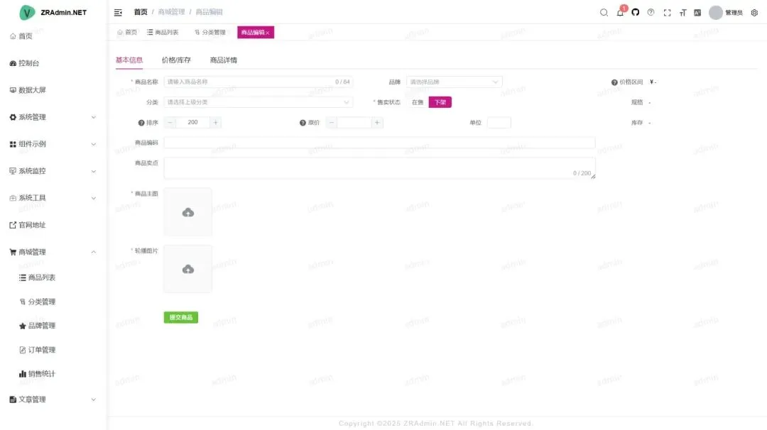 - 字典管理:维护系统中固定常量数据(如状态、类型等),支持动态扩展。