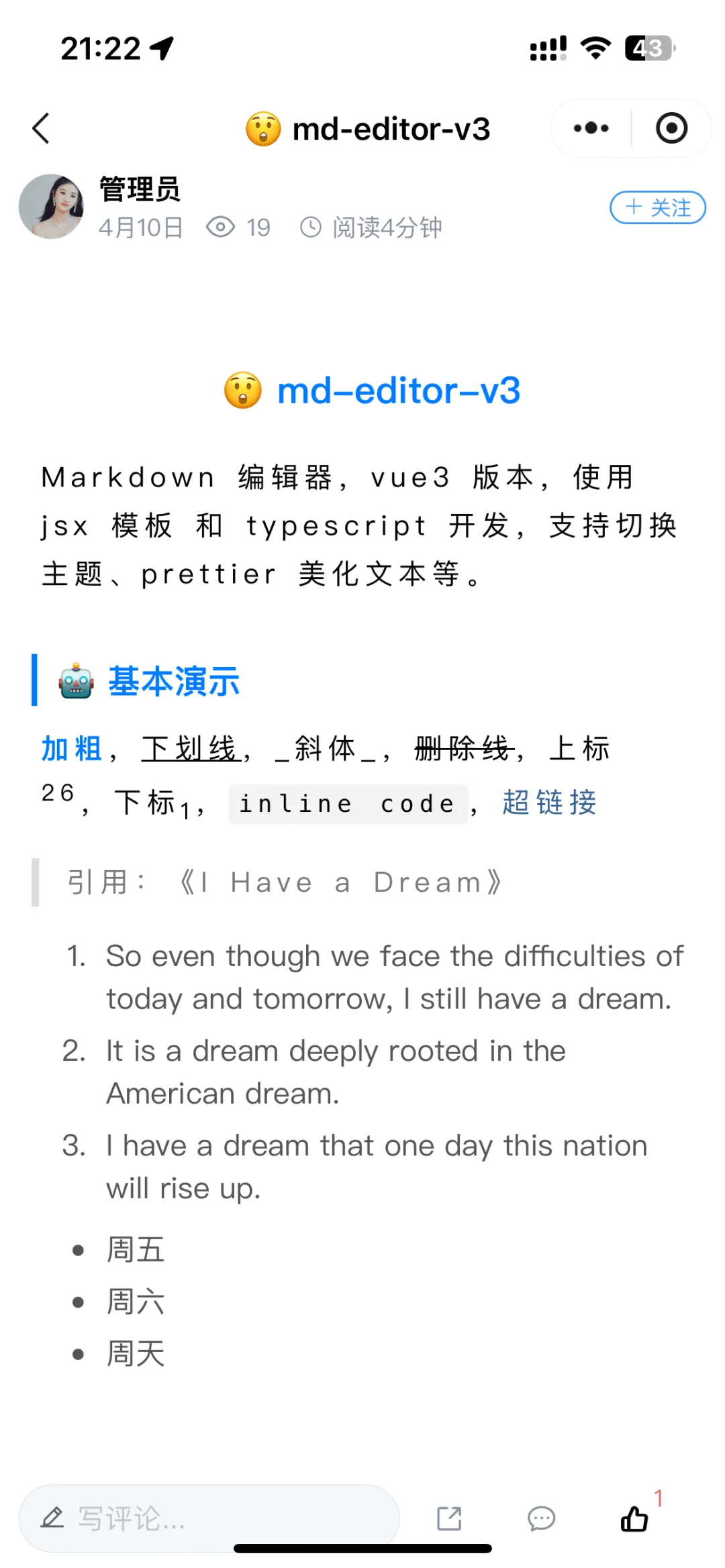 文章管理:记录与管理系统文章内容,支持分类与富文本编辑。 -