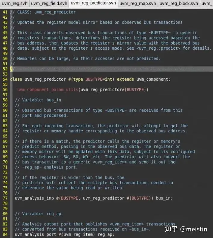 uvm_reg_predictor继承自uvm_component,这个组件也存在于UVM的树形结构中,其实也可以理解,他的作用也无异于uvm_monitor、uvm_driver这类组件,他并不会做太多定制行为,它只是一个无情的监测预测机器,它将monitor发过来的transaction分析后做出predict,所以当时具备了一个uvm_component该有的一切特性。