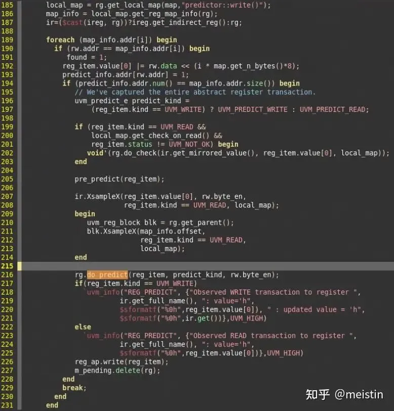 uvm_reg_predictor中的write()函数截图如下,我们上面提到的相关应用全部在其中实现了,具体实现细节我们这里就不仔细去分析了,绝大多数重要功能我们在上文都已经提及了