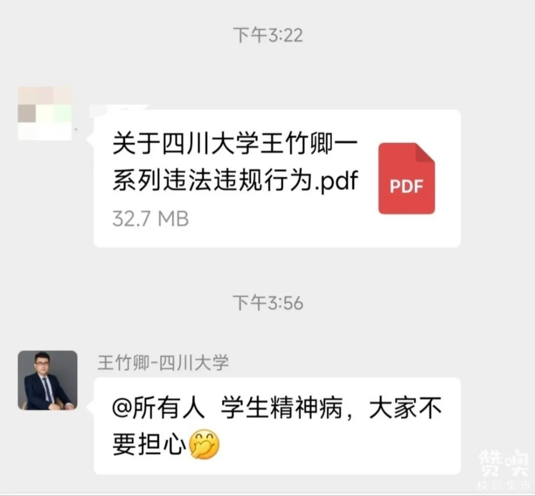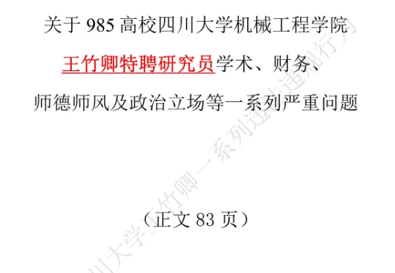 近日,四川大学机械与工程学院数名在校博士和硕士研究生,以联合举报的方式,用83页PDF反映导师王竹卿的诸多不当行为。