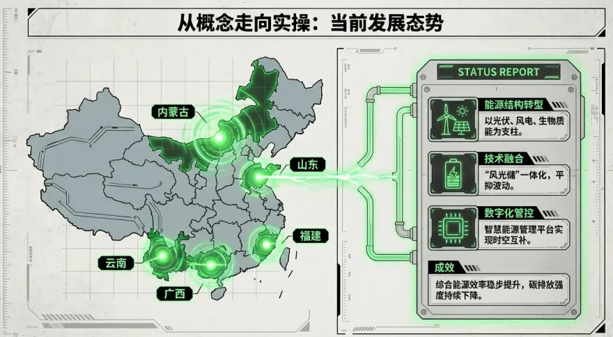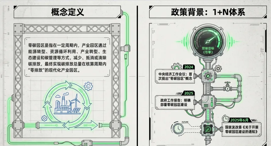 双碳目标指引下,零碳园区已从政策概念加速落地为产业转型的核心抓手。自2024年中央经济工作会议首次提出相关概念,到2025年政府工作报告明确部署、国家发改委印发实施通知,“1+N”政策体系逐步完善,推动零碳园区从顶层设计走向实操阶段。当前,国内多地已率先探索,内蒙古以光伏、风电等可再生能源为支柱完成能源结构转型,山东通过“风光储”一体化技术平抑能源波动,福建借助智慧能源管理平台实现时空互补,广西则稳步提升综合能源效率、降低碳排放强度,形成了各具特色的试点经验,为全国推广奠定基础。