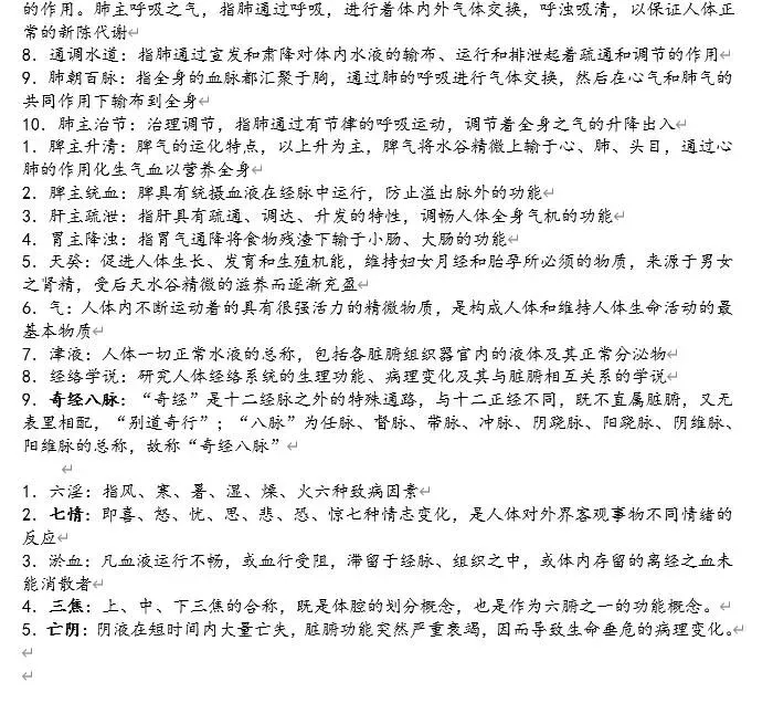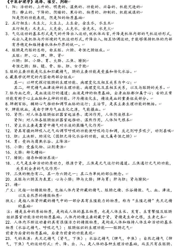 中医护理学 的知识点太多了