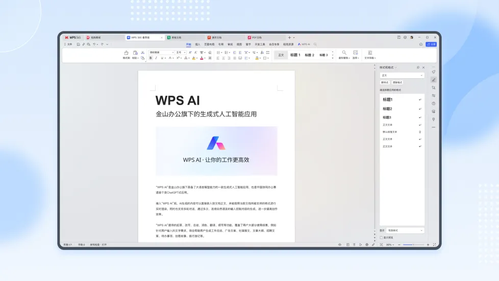 AI智能辅助:集成智能校对、一键美化、OCR文字识别(含表格识别)、语音输入、AI文档生成等功能,简化排版与数据处理,提升创作效率。