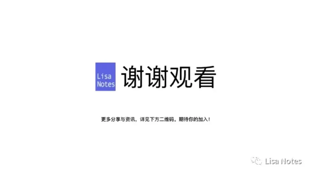 Lisa Notes |一个Lisa’s notes:生活、工作、学习中那些事儿,感悟自我成长,随心随笔杂谈。微信搜索「Lisa Notes」(ID:Lisa-notes),查看更多信息,原创小说,PPT干货分享。