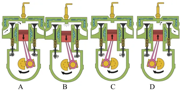 3. 现代汽车的发动机一般都是四冲程内燃机,若四个冲程如图所示,若飞轮的转速为3000r/min。则从吸气冲程到排气冲程的排序和1s内对外做功的次数正确的是( )