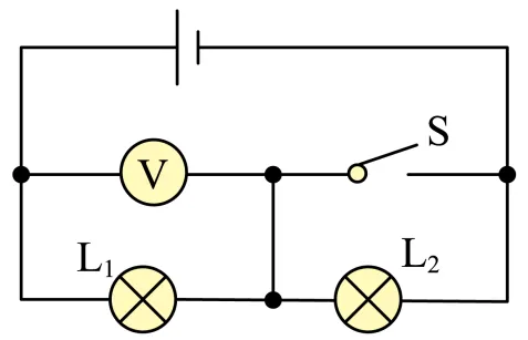 8. 图示电路中,当开关S闭合后,电压表示数为6V;当开关S断开时,电压表示数为4V,则此时灯L2和L1两端的电压分别为( )