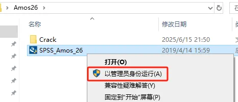 第三步:打开解压后的文件夹,选中【SPSS_Amos_26】,右击以管理员身份运行。